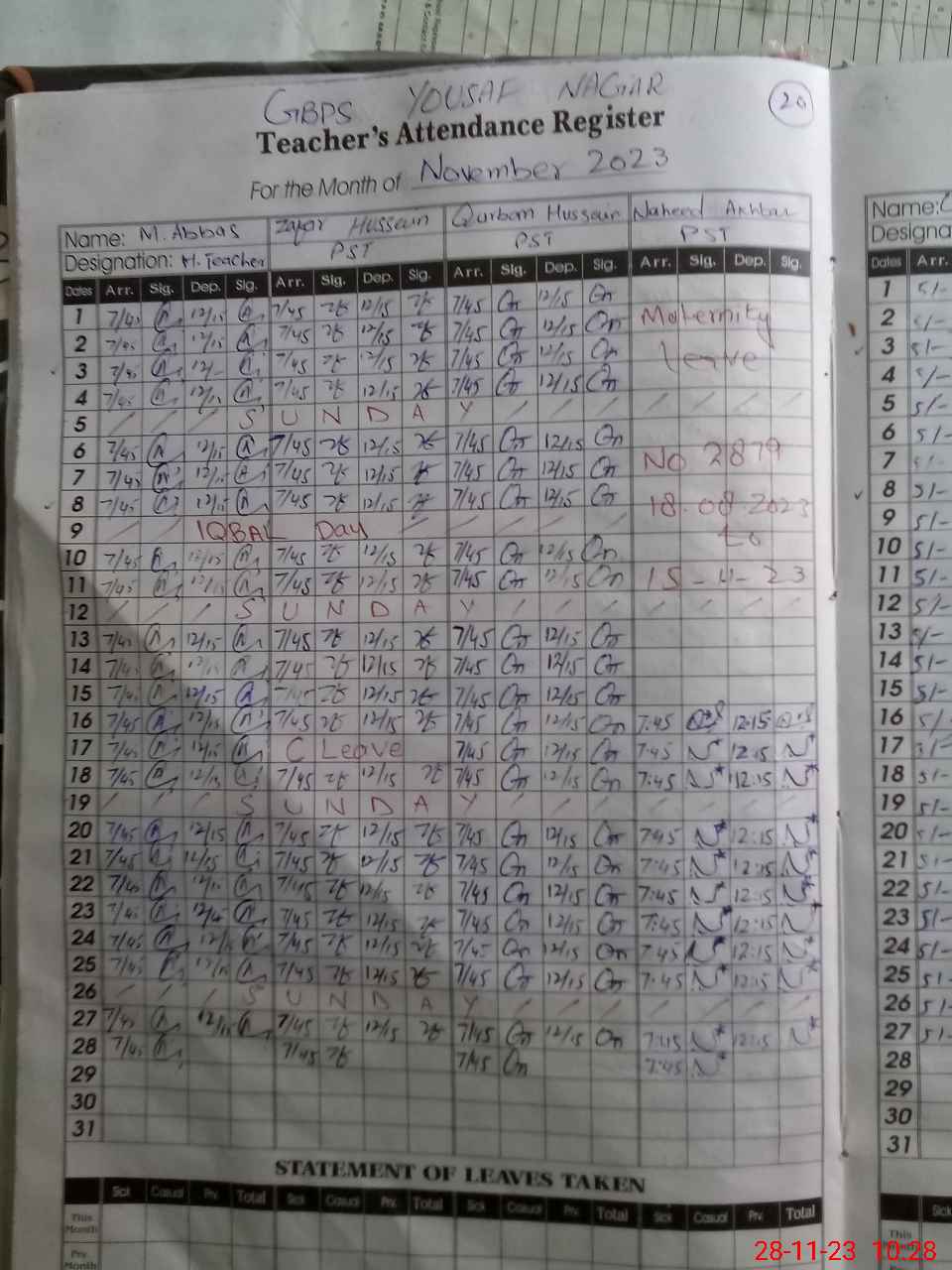 | Leave | Duty | Absent | Maternity | Medical | Ex- Pak |