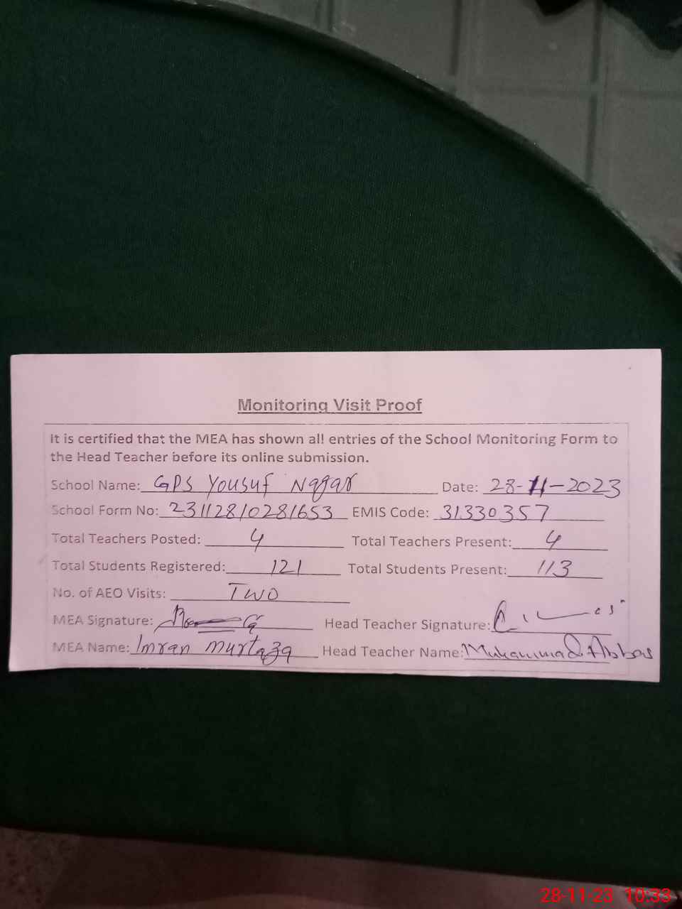 | EMIS Code: 31330357 | Name of School: GPS YOUSAF NAGAR | |||