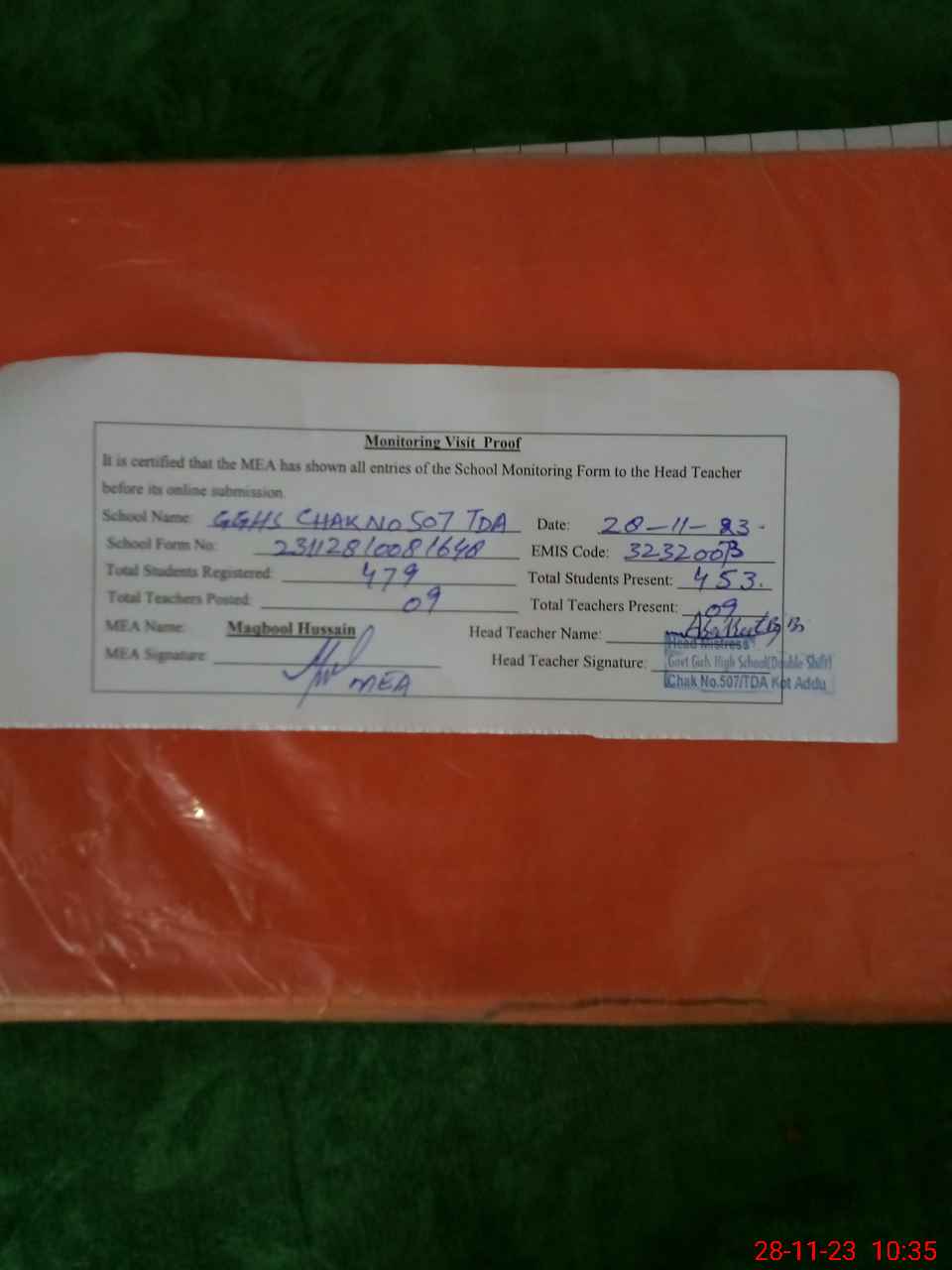 | EMIS Code: 32320073 | Name of School: GGHS CHAK NO. 507 TDA | |||
