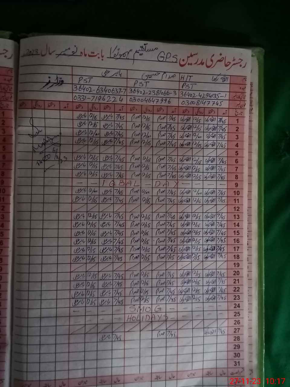 | Name: AL**** RA**** Designation: (School Headmaster's/Headmistress's) PST Phone/Cell Number: 03**** |