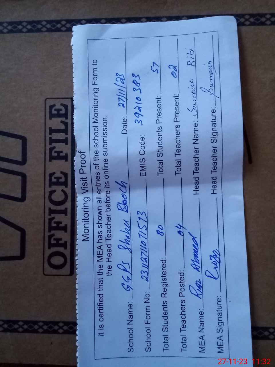 | EMIS Code: 39210383 | Name of School: GGPS SHAHU BLOCH | |||
