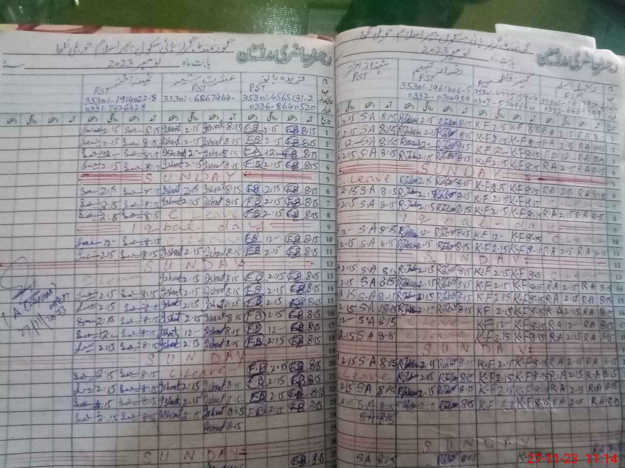 | Name: RA**** SI**** Designation: (School Headmaster's/Headmistress's) SST GENERAL Phone/Cell Number: 03**** |