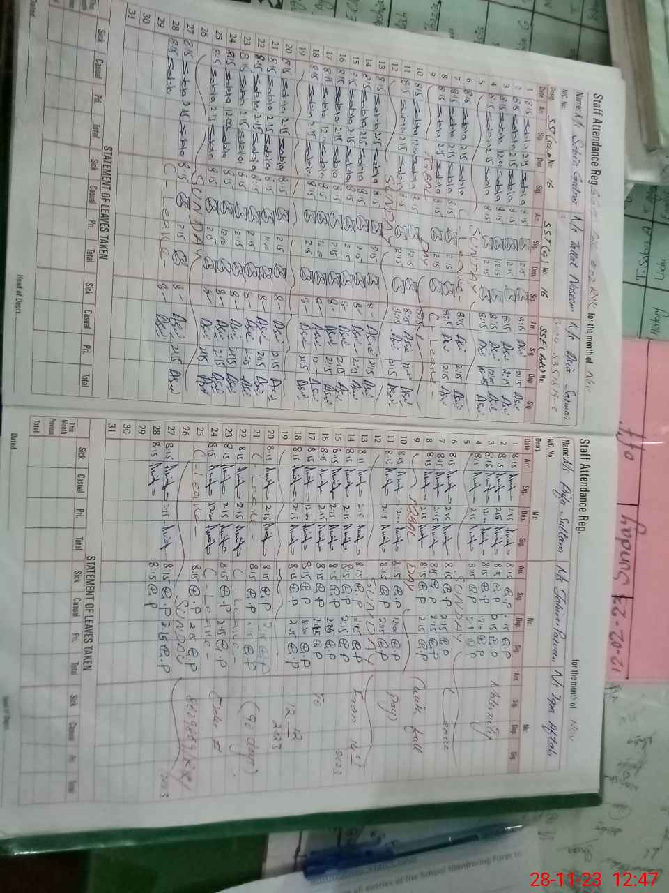 | CNIC | Full Name | Designation | R/C | Absence During Last Calender Month |