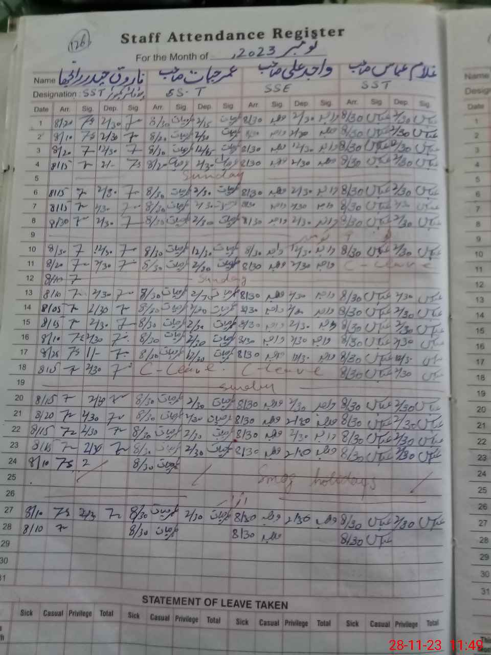 | CNIC | Full Name | Designation | R/C | Absence During Last Calender Month |