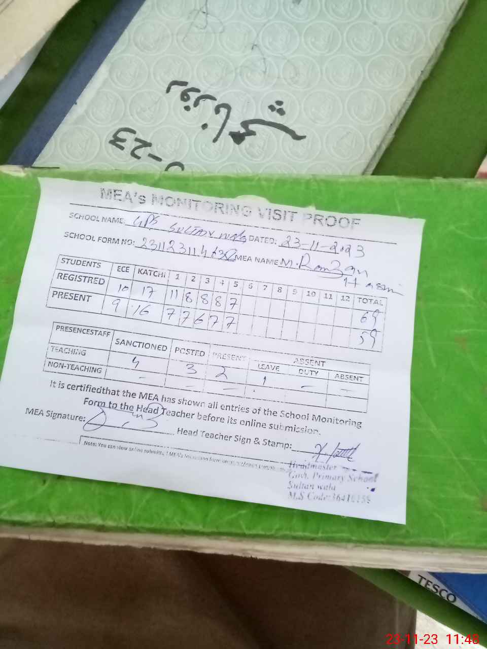 | EMIS Code: 36410159 | Name of School: GPS SULTAN WALA, P/O HAQ NAWAZ WALA, KABIRWALA | |||