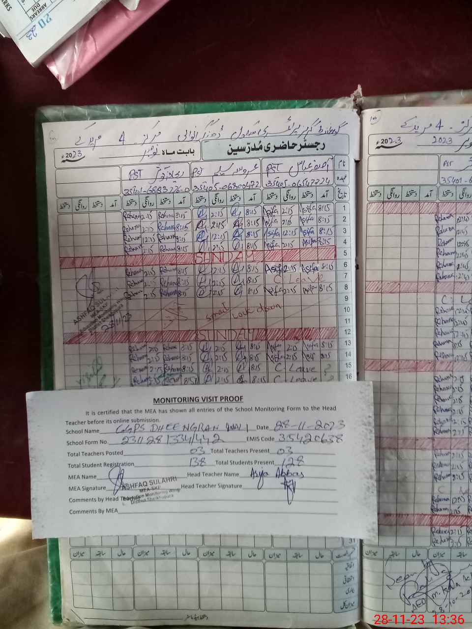 | EMIS Code: 35420638 | Name of School: GGPS DHEENGRAN WALI | |||