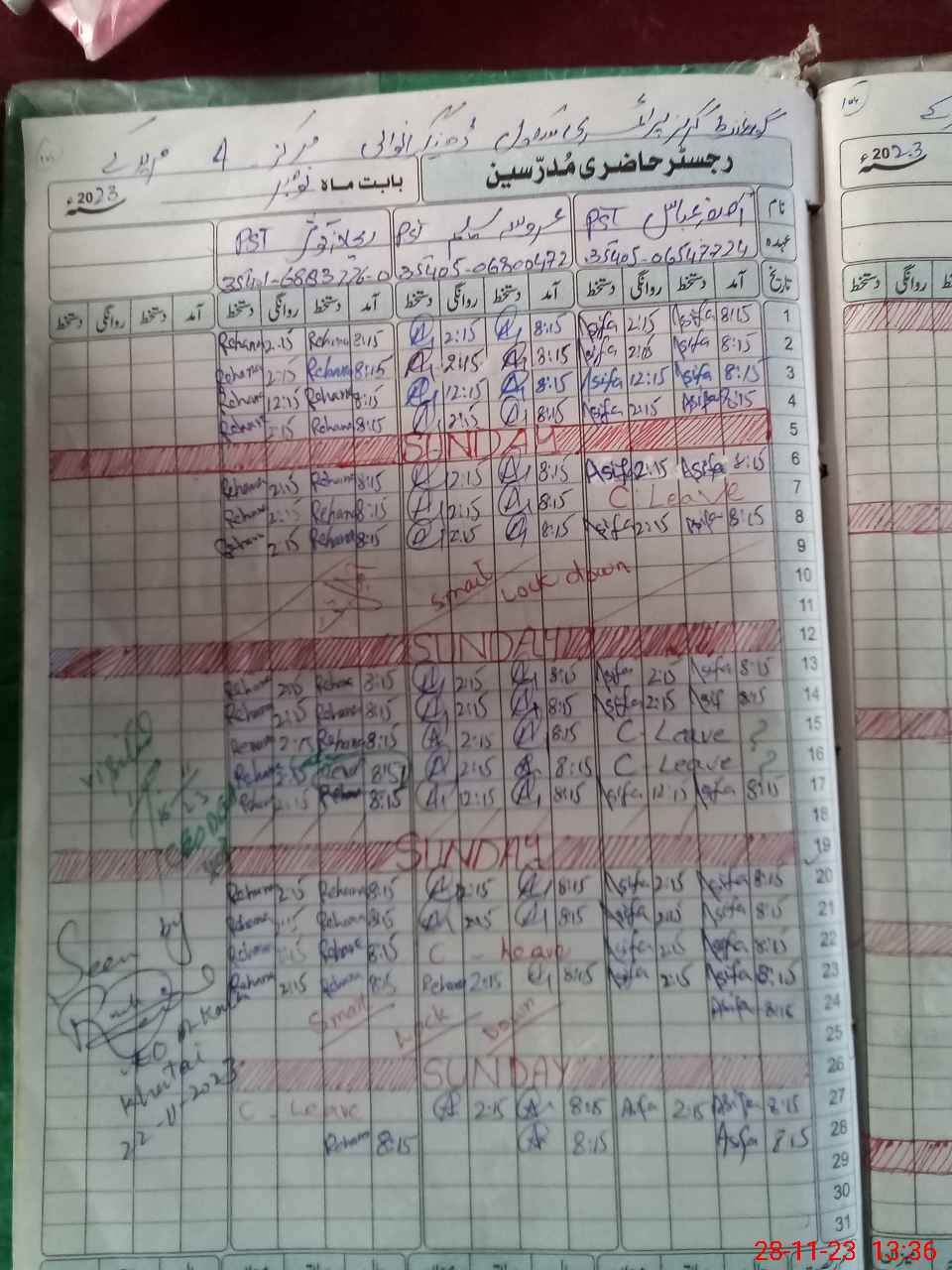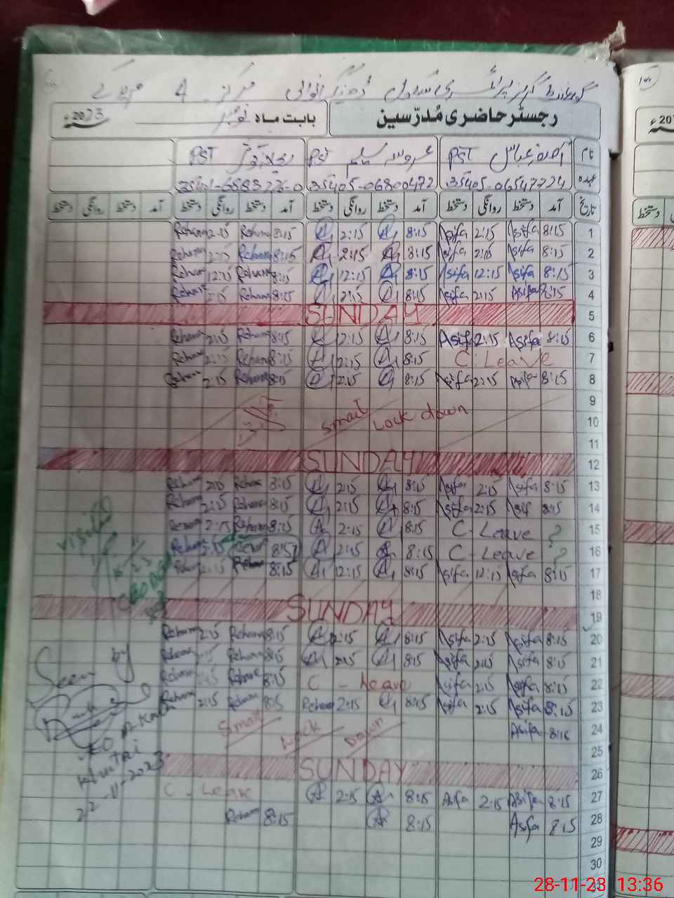 | Name: AS**** AB**** Designation: (School Headmaster's/Headmistress's) PST Phone/Cell Number: 03**** |