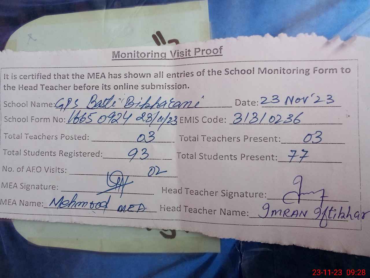 | EMIS Code: 31310236 | Name of School: GPS BASTI BIKHRANI | |||