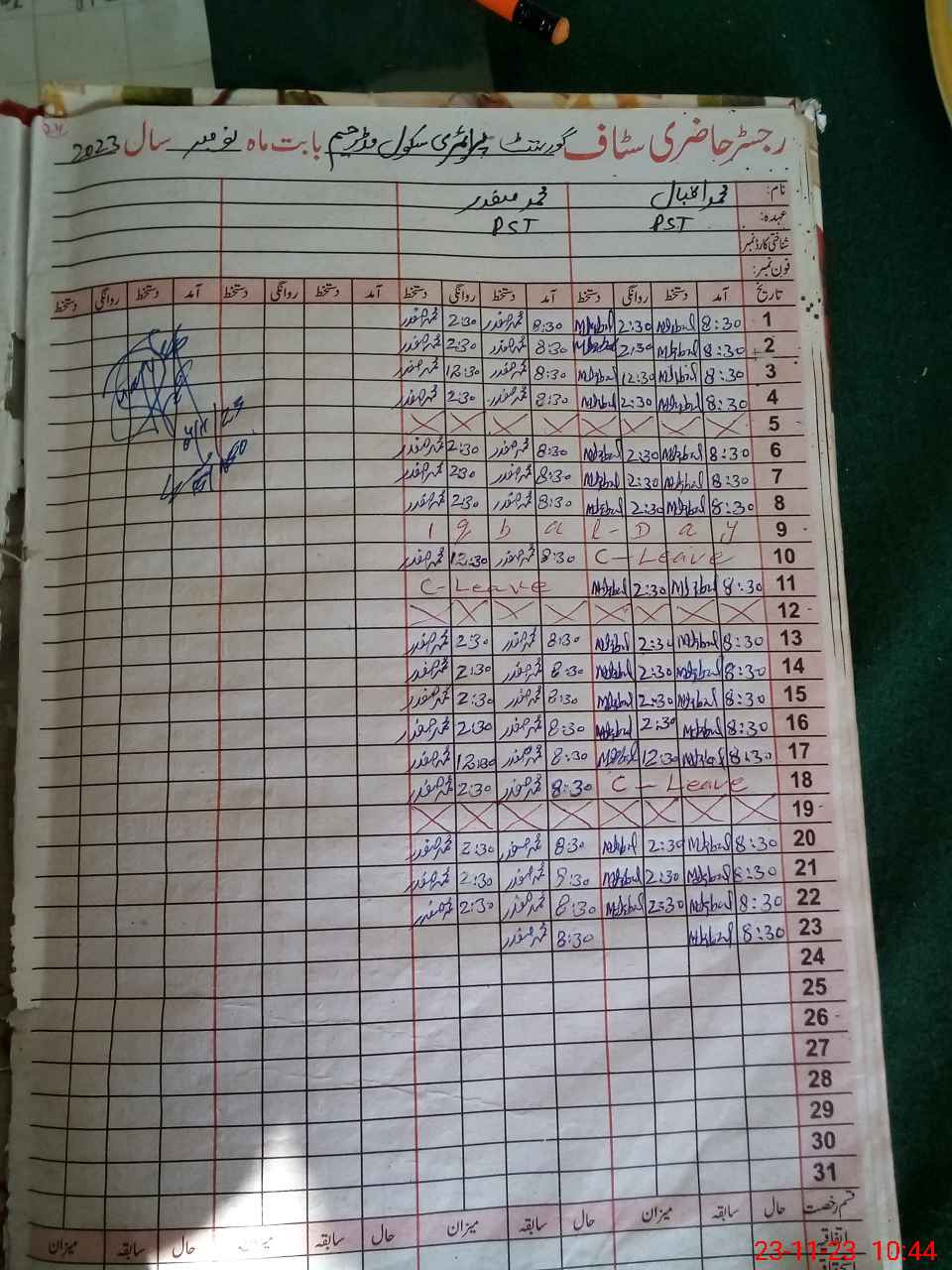 | Name: MU**** IQ**** Designation: (School Headmaster's/Headmistress's) PST Phone/Cell Number: 03**** |