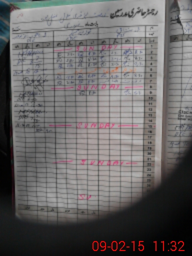 | CNIC | Full Name | Designation | R/C | Absence During Last Calender Month |