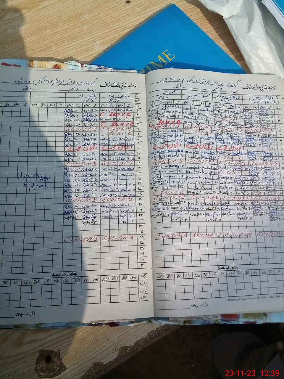 | CNIC | Full Name | Designation | R/C | Absence During Last Calender Month |