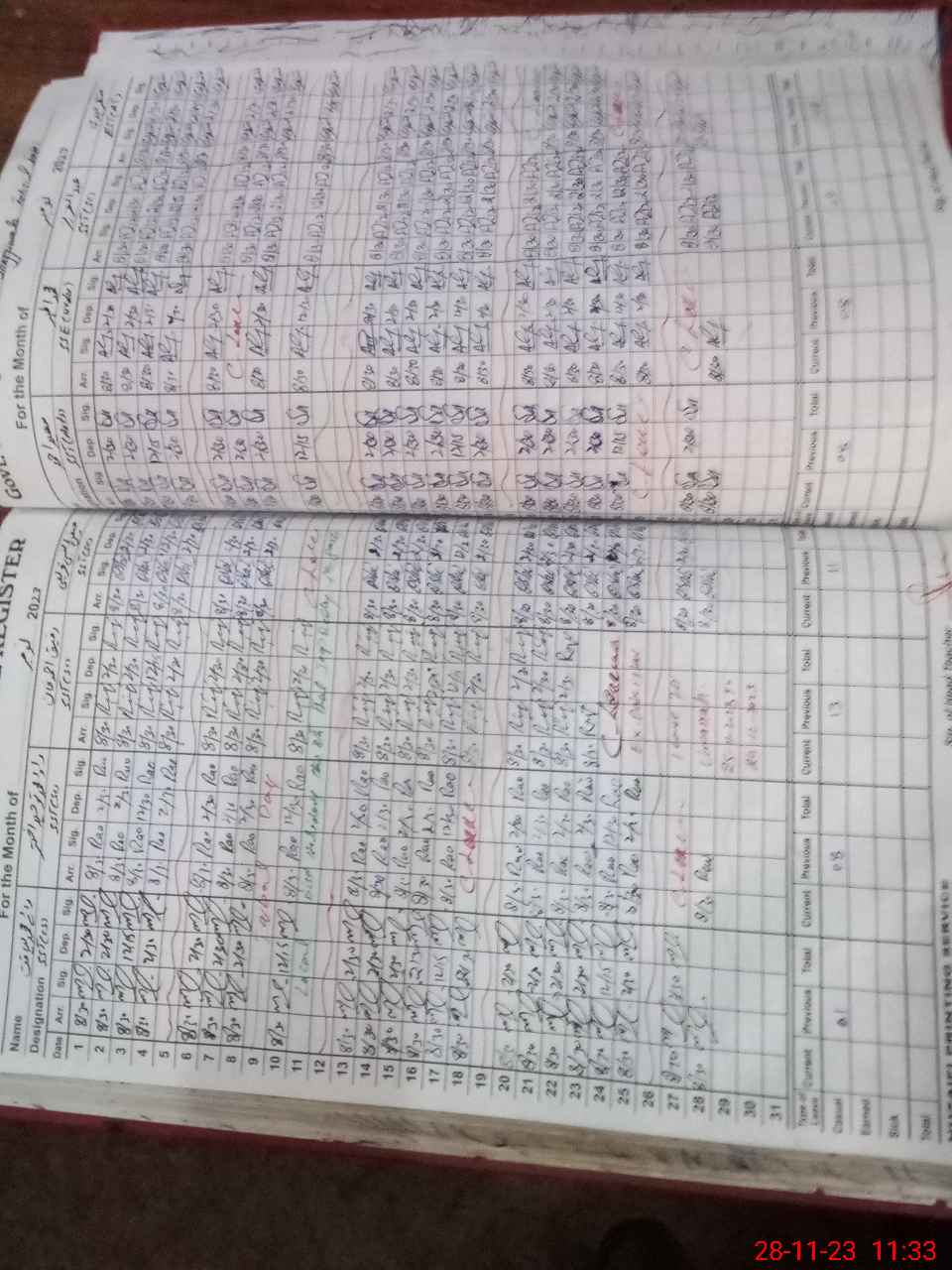 | CNIC | Full Name | Designation | R/C | Absence During Last Calender Month |