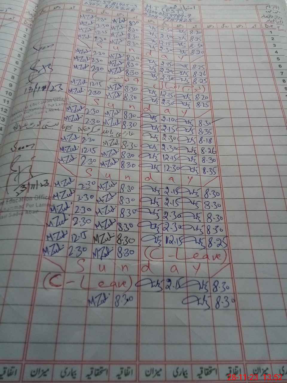 | CNIC | Full Name | Designation | R/C | Absence During Last Calender Month |