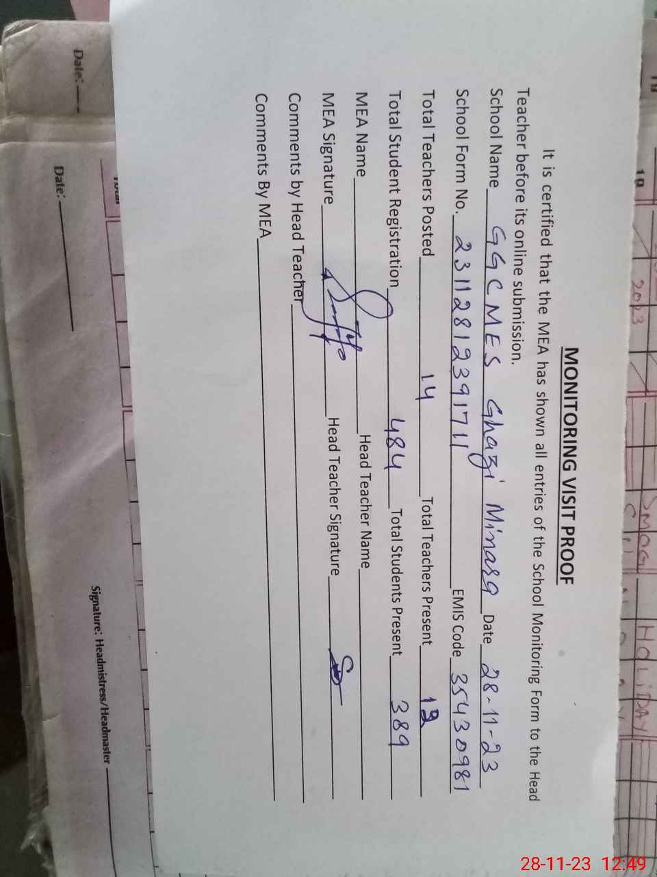 | EMIS Code: 35430981 | Name of School: GGCMES GHAZI MINARA | |||