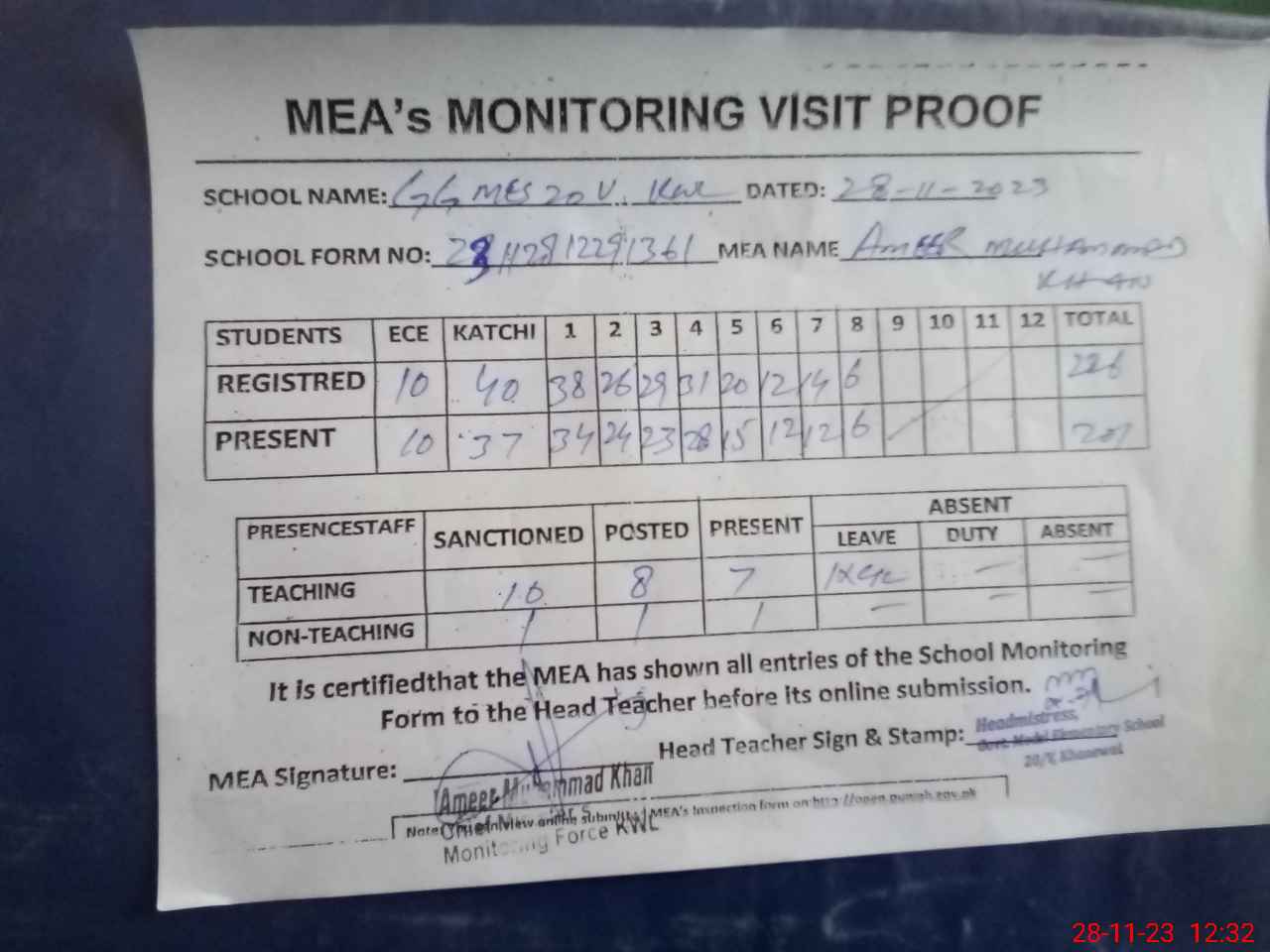 | EMIS Code: 36420395 | Name of School: GGMES 20/V, KHANEWAL | |||