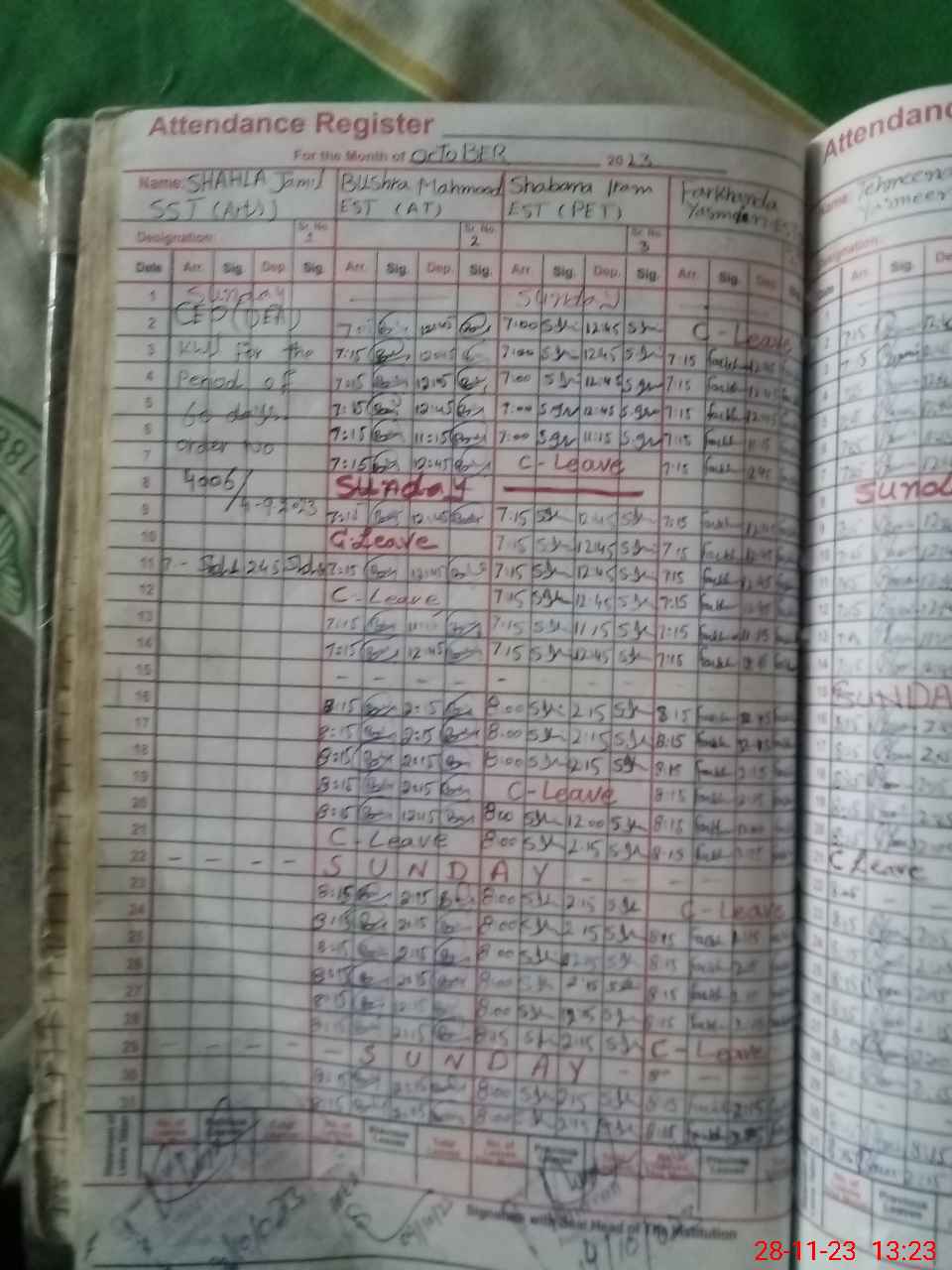 | 36**** | Sh**** Ja**** | 5 | 1 | 0 | 0 | 0 | 0 | 0 | 0 | 0 | 0 | 0 | Absent (Un-Authorized) |