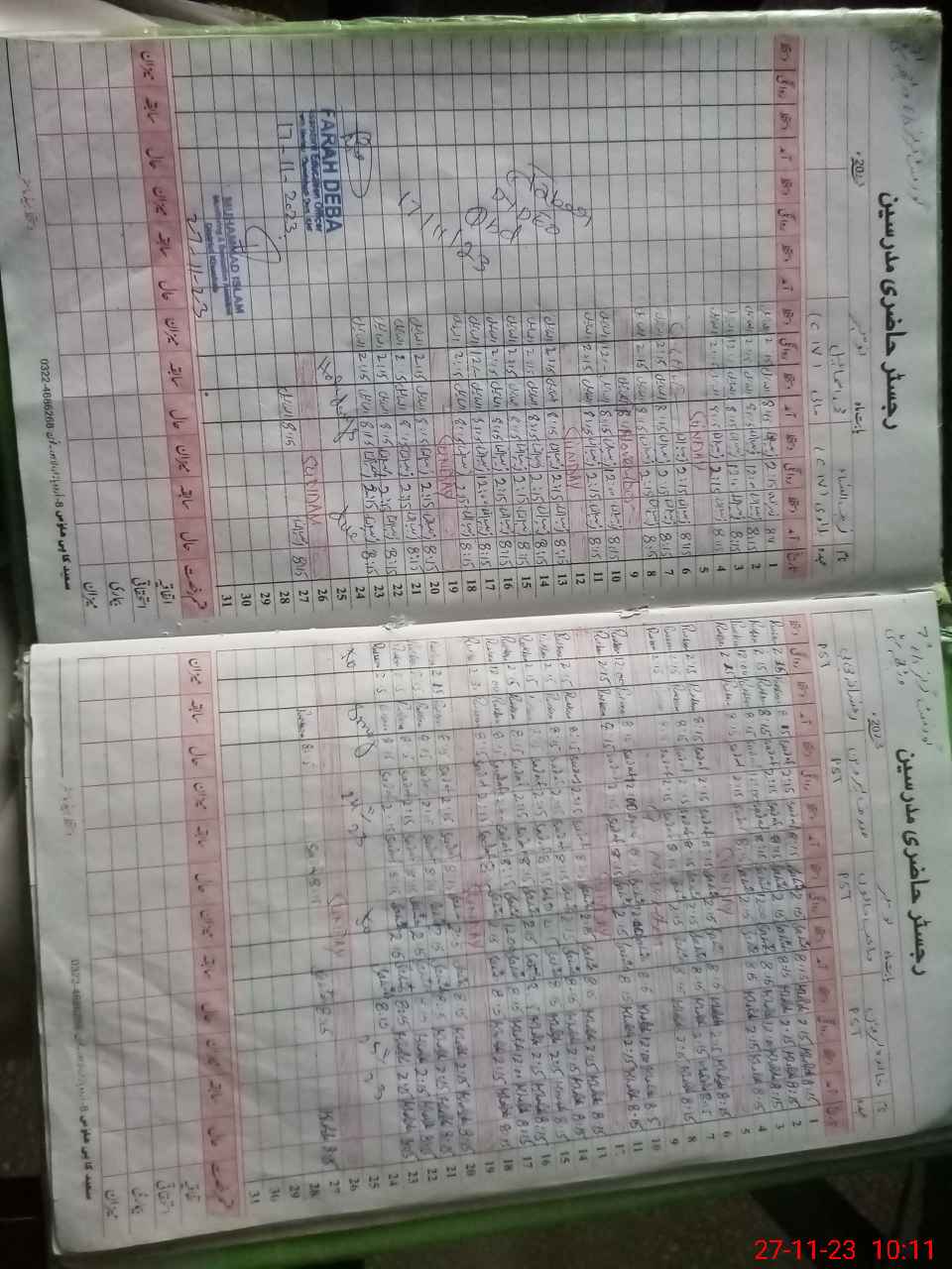 | CNIC | Full Name | Designation | R/C | Absence During Last Calender Month |