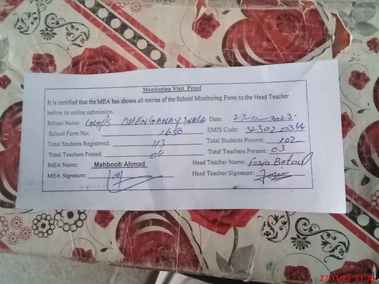 | EMIS Code: 32320344 | Name of School: GGPS DHENGANAY WALA | |||