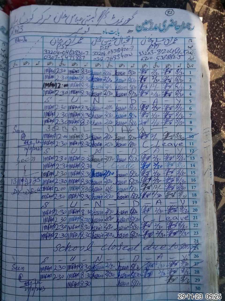 | Name: IM**** AL**** KH**** Designation: (School Headmaster's/Headmistress's) ESE Phone/Cell Number: 03**** |