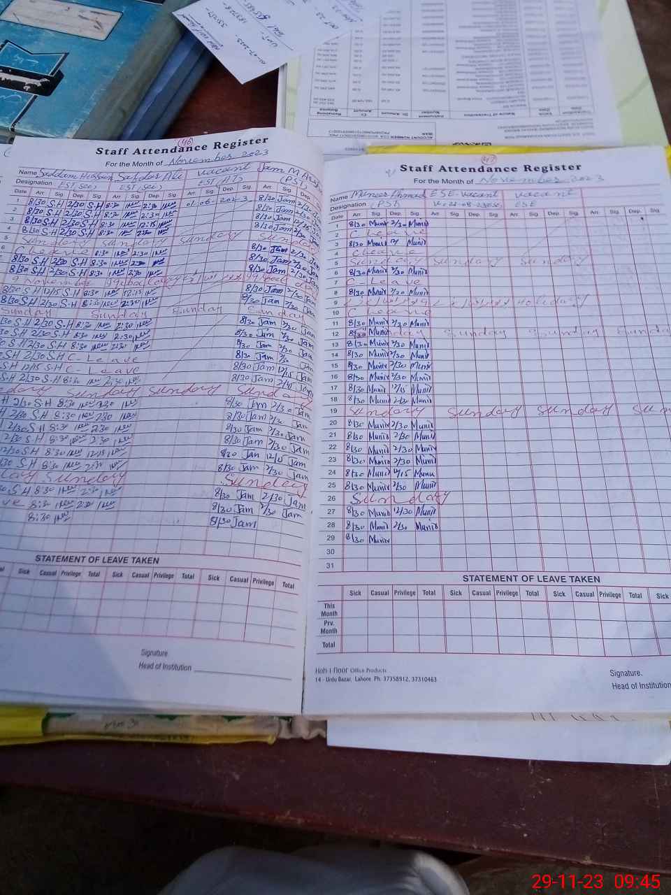 | Name: SH**** AH**** SI**** Designation: (School Headmaster's/Headmistress's) IC SST (G) Phone/Cell Number: 03**** |