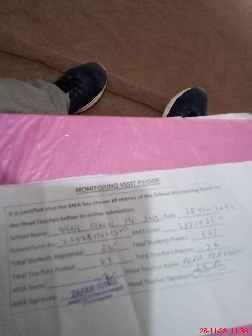 | Attendance Register | Head Teacher | MEA with School | Visit Proof |