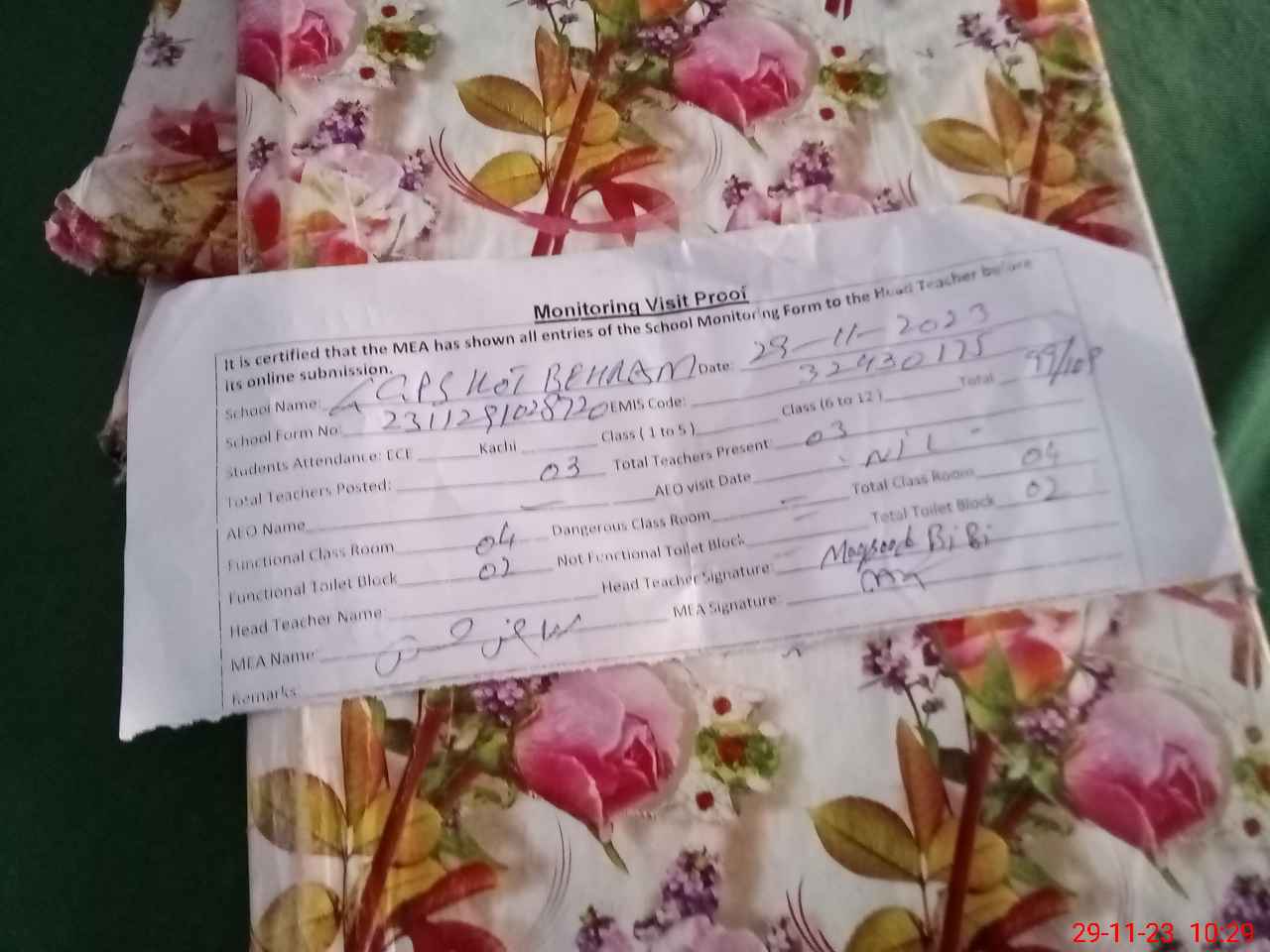 | EMIS Code: 32430175 | Name of School: GGPS KOT BEHRAM | |||