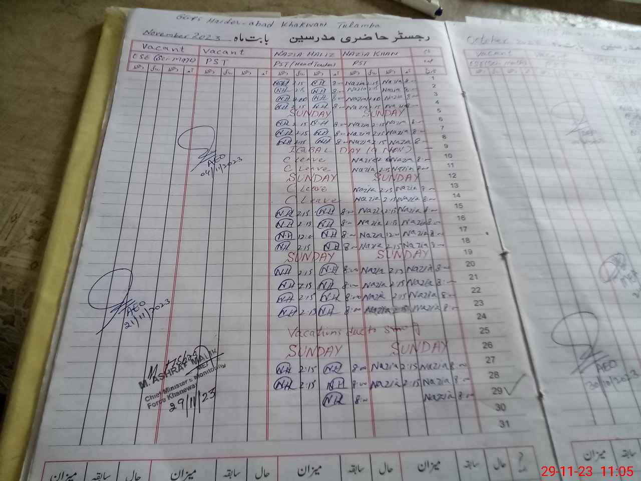 | CNIC | Full Name | Designation | R/C | Absence During Last Calender Month |