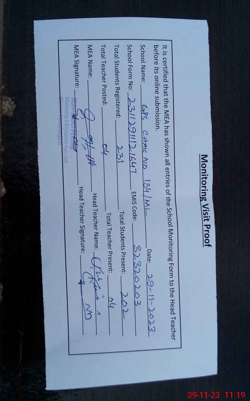 | Attendance Register | Head Teacher | MEA with School | Visit Proof |