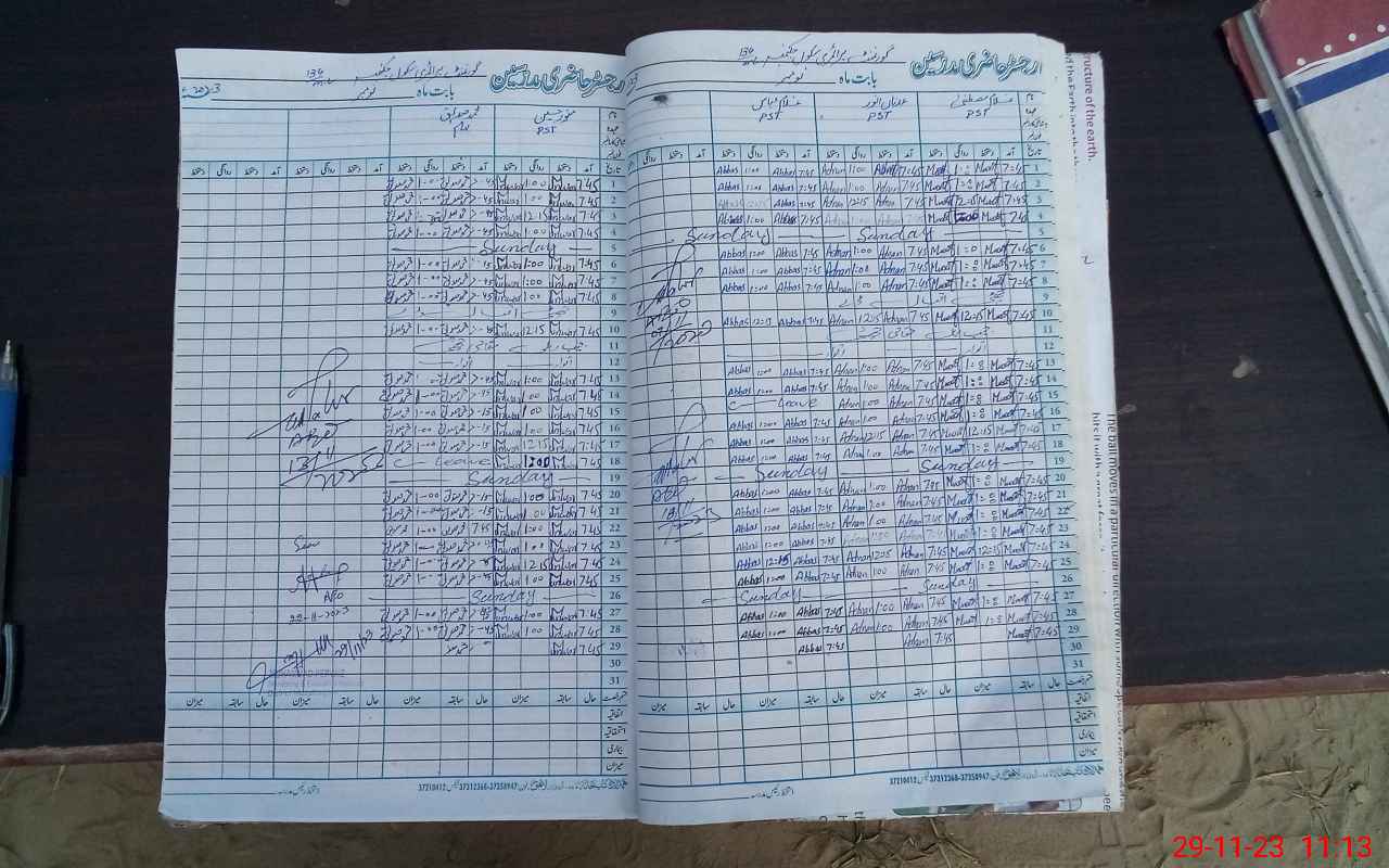 | CNIC | Full Name | Designation | R/C | Absence During Last Calender Month |