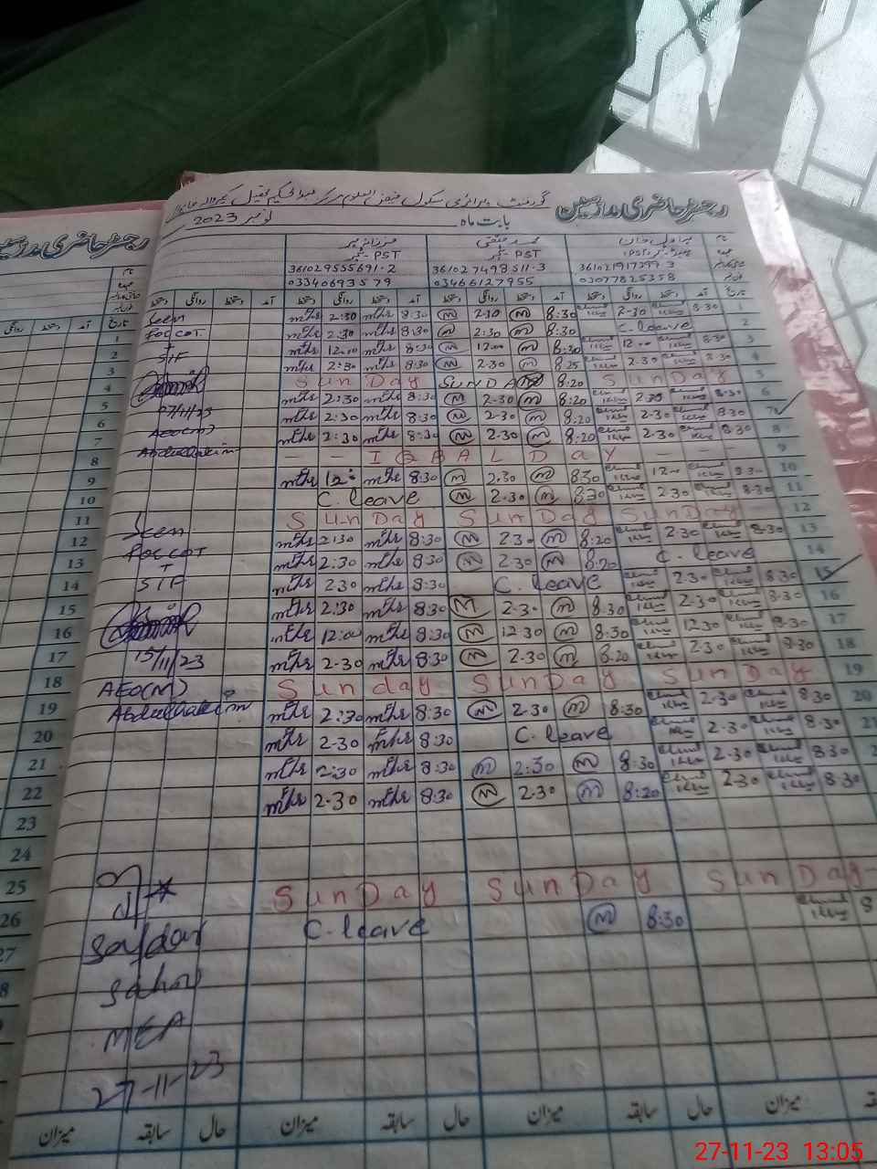| Name: BH**** KH**** Designation: (School Headmaster's/Headmistress's) PST Phone/Cell Number: 03**** |