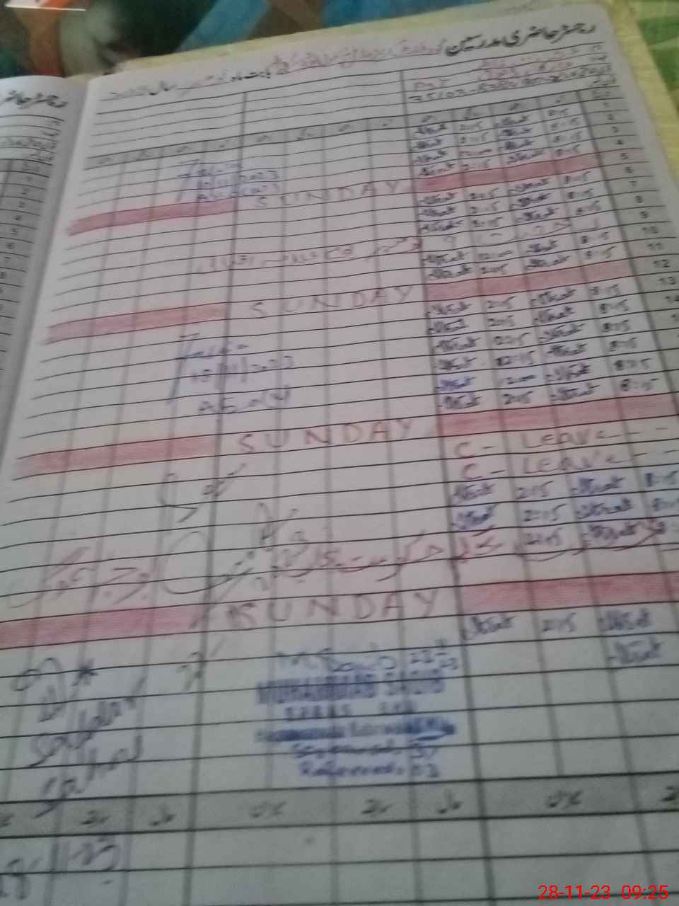 | CNIC | Full Name | Designation | R/C | Absence During Last Calender Month |