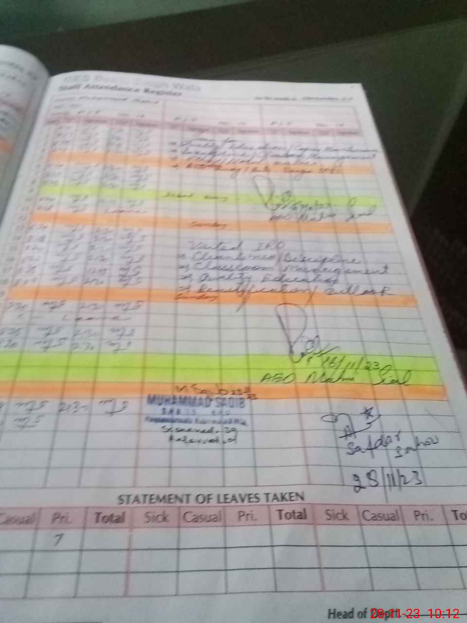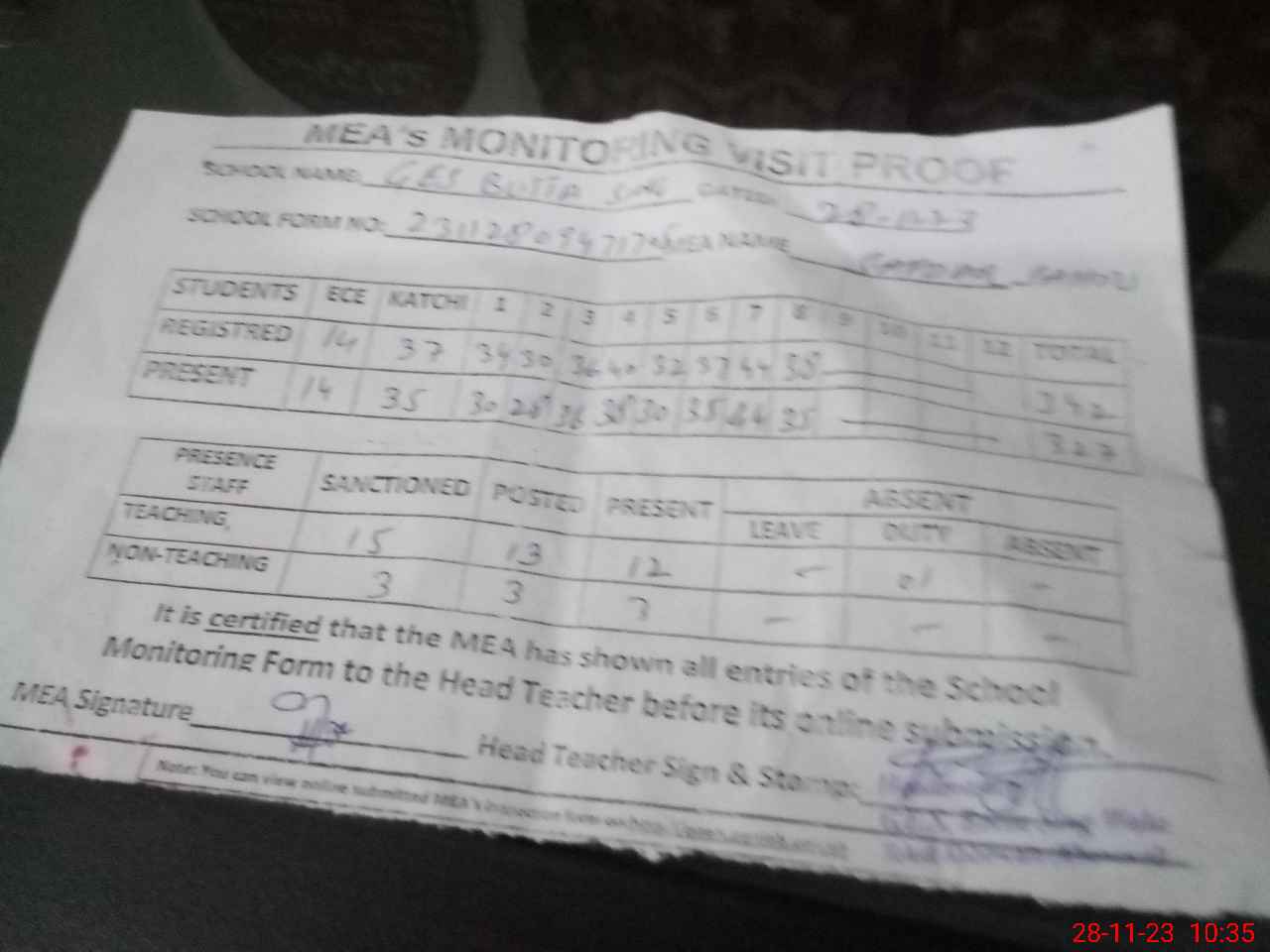 | Attendance Register | Head Teacher | MEA with School | Visit Proof |
