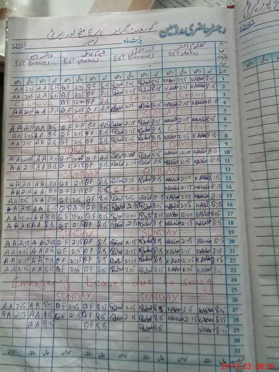 | CNIC | Full Name | Designation | R/C | Absence During Last Calender Month |