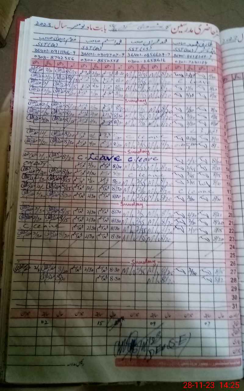 | CNIC | Full Name | Designation | R/C | Absence During Last Calender Month |