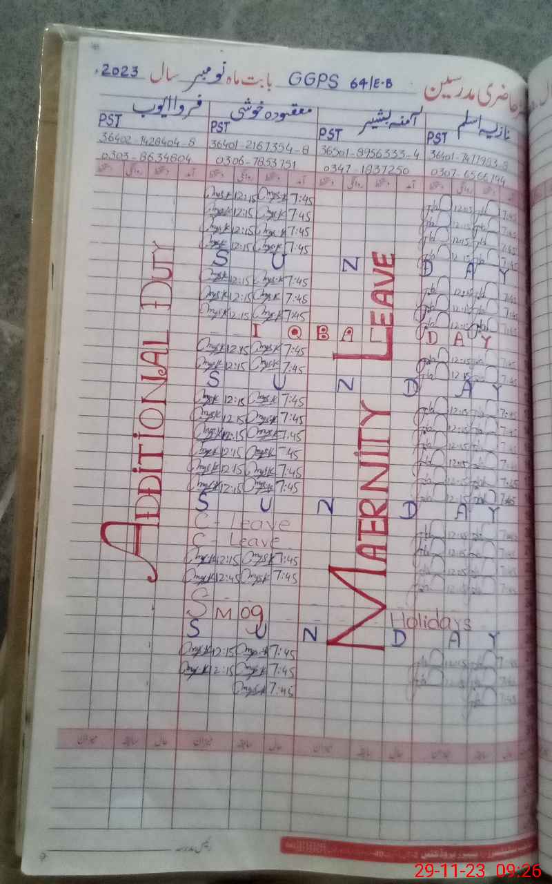 | Name: NA**** AS**** Designation: (School Headmaster's/Headmistress's) PST Phone/Cell Number: 03**** |