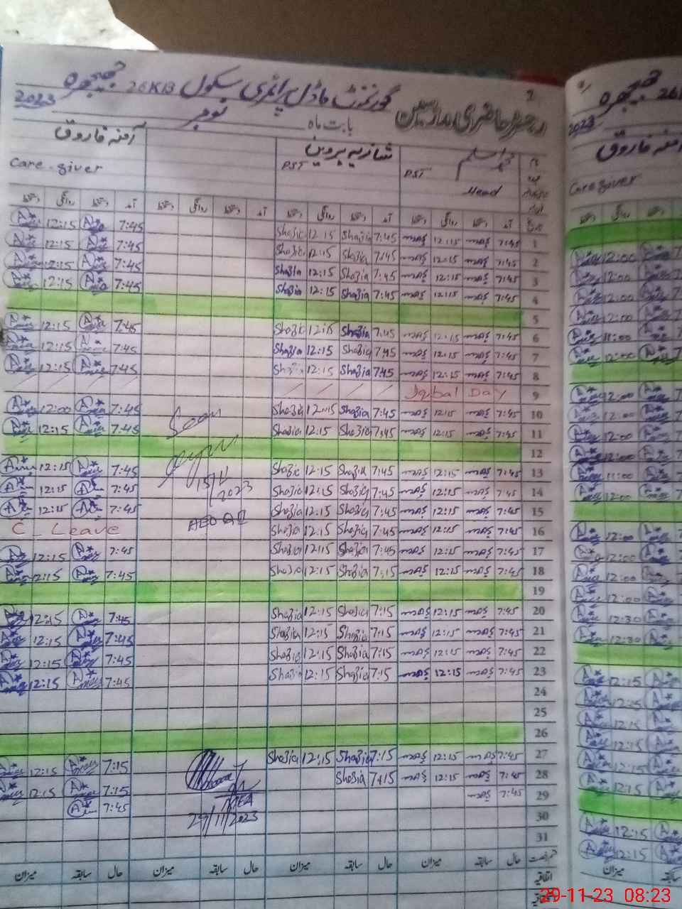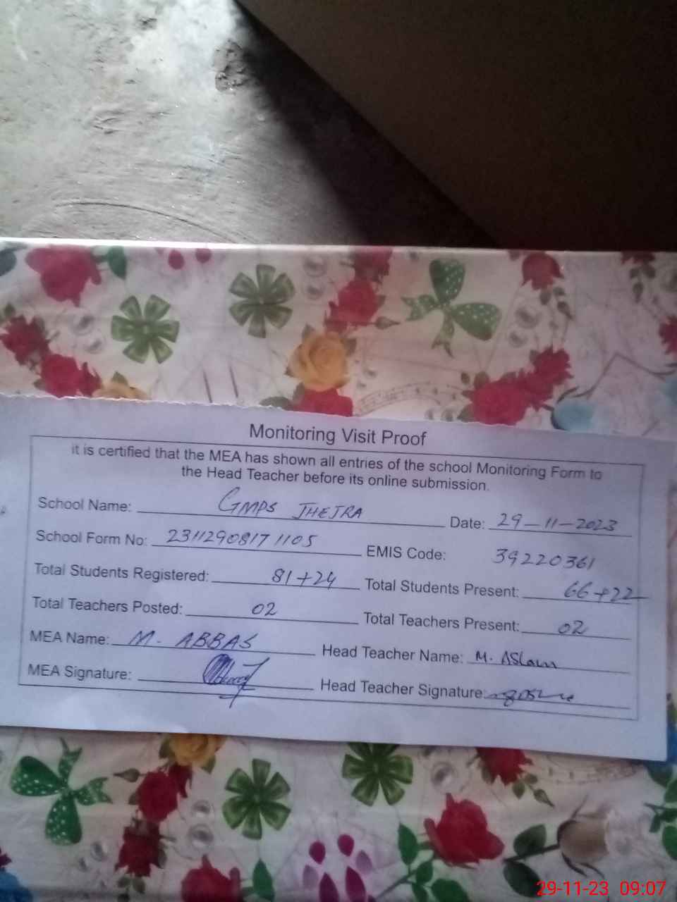 | Attendance Register | Head Teacher | MEA with School | Visit Proof |