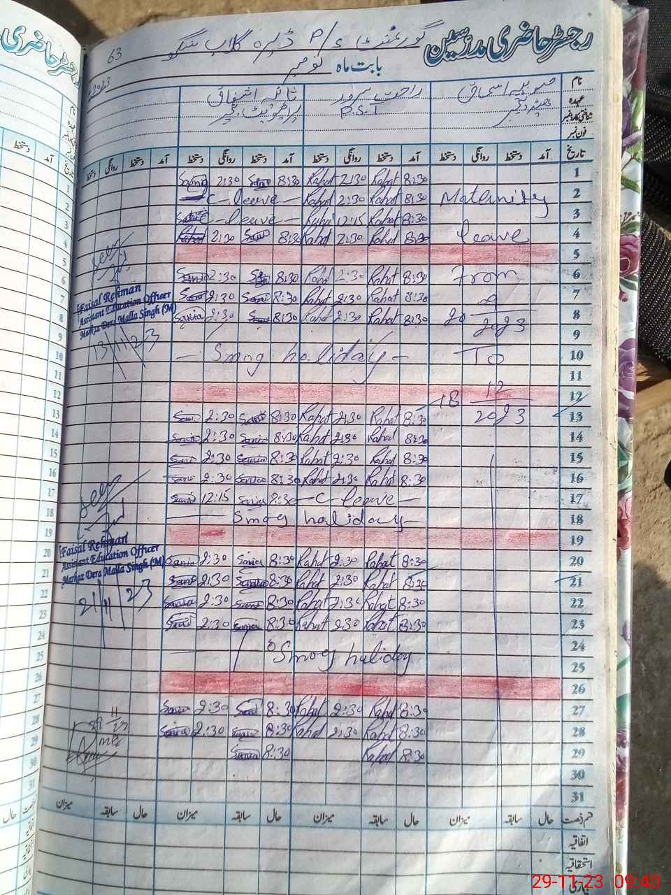 | Name: Ra**** Sa**** Designation: (School Headmaster's/Headmistress's) PST Phone/Cell Number: 03**** |