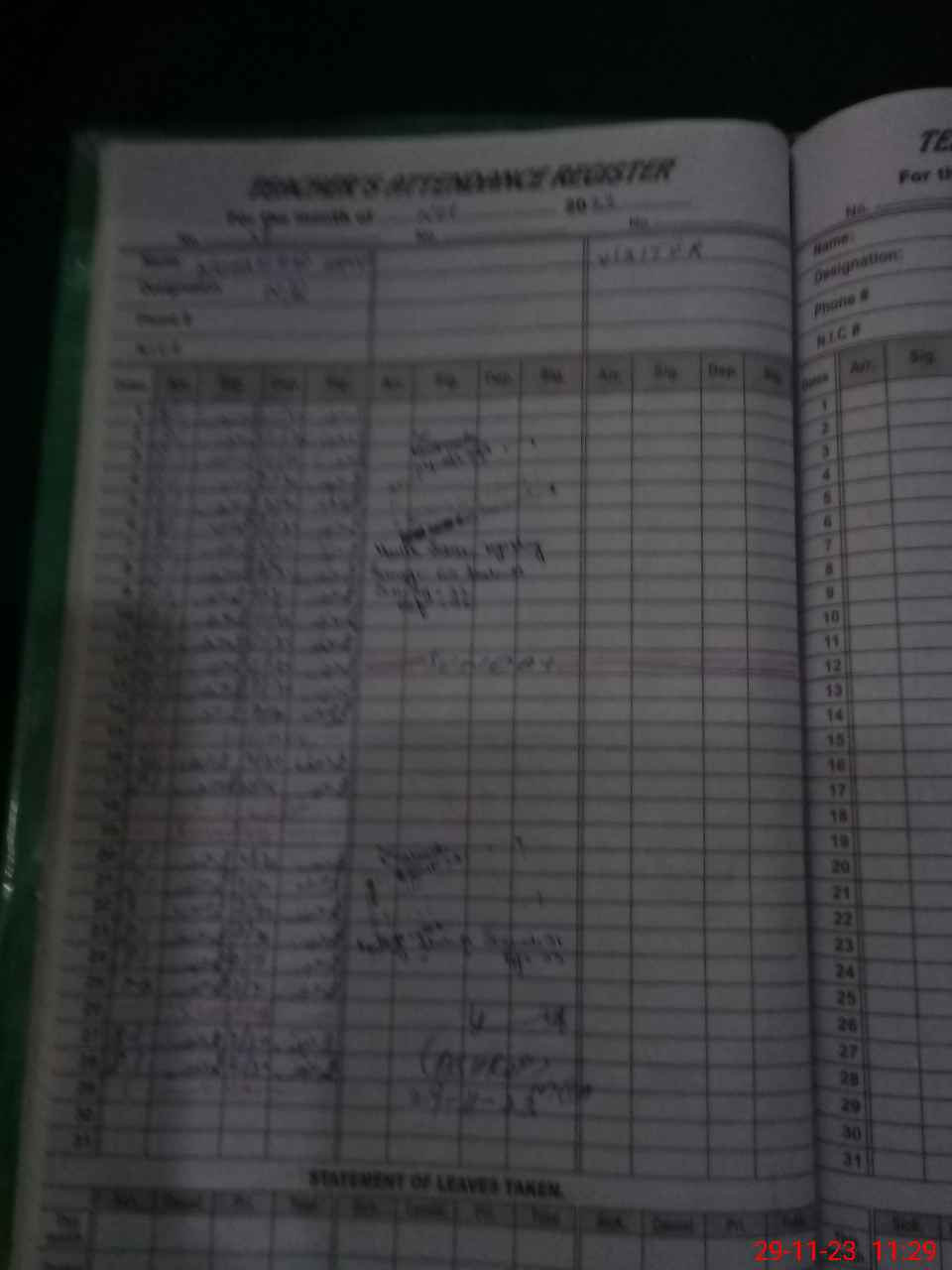 | CNIC | Full Name | Designation | R/C | Absence During Last Calender Month |
