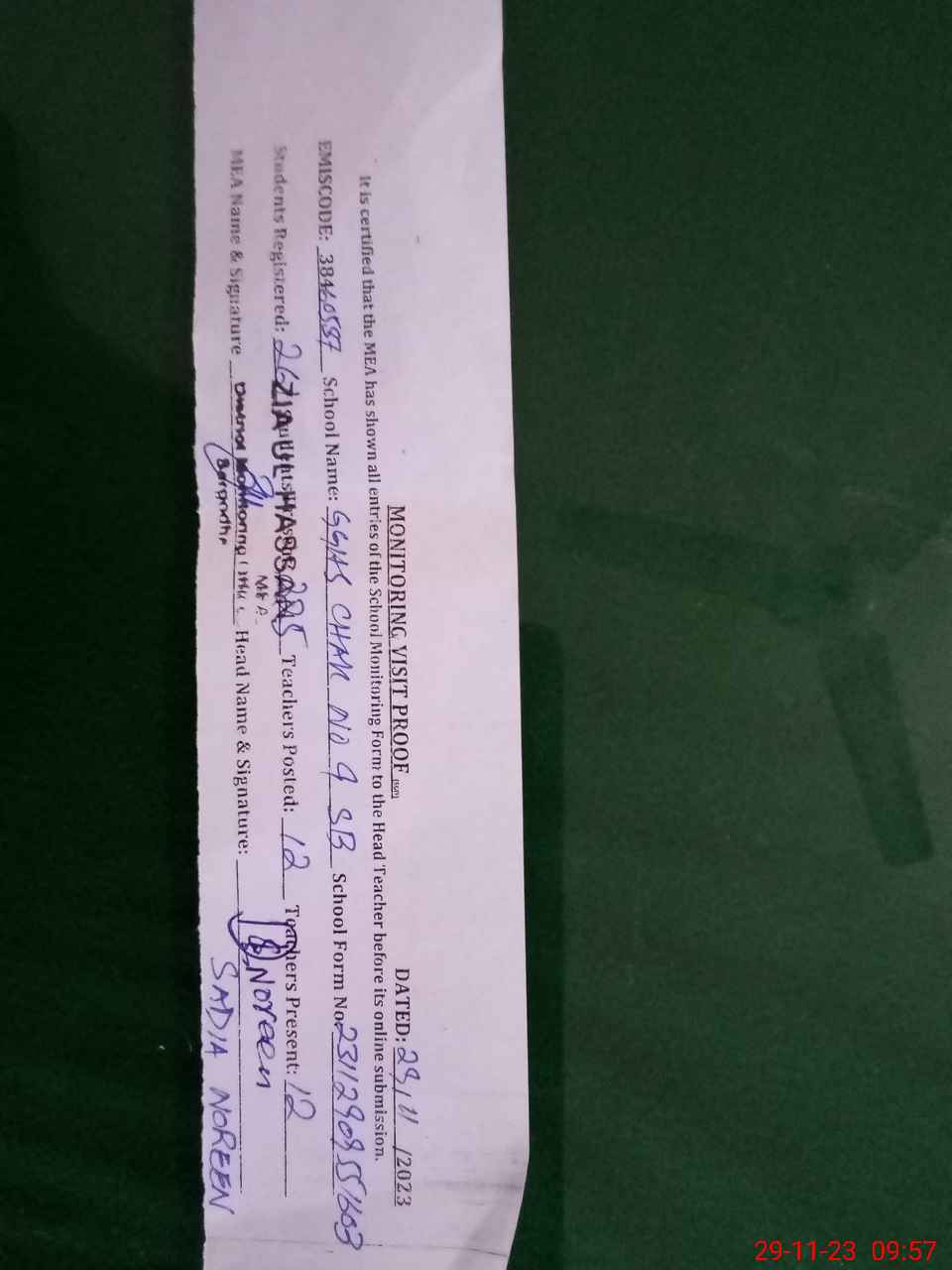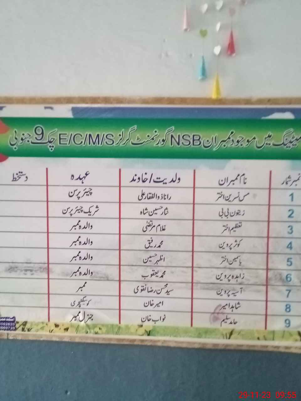 | EMIS Code: 38460587 | Name of School: GGHS CHAK NO.9 SB | |||