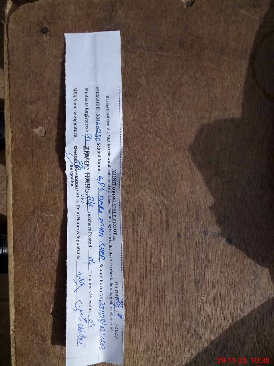 | EMIS Code: 38460250 | Name of School: GPS DERA MIAN SHER | |||
