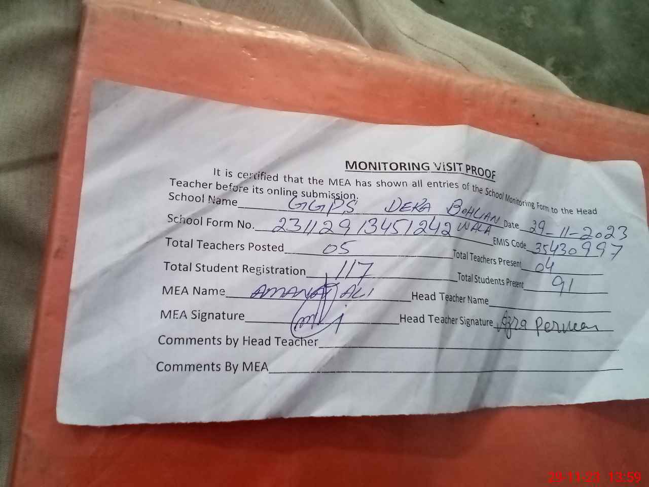| EMIS Code: 35430997 | Name of School: GGPS DERA BOHLIAAWALA | |||