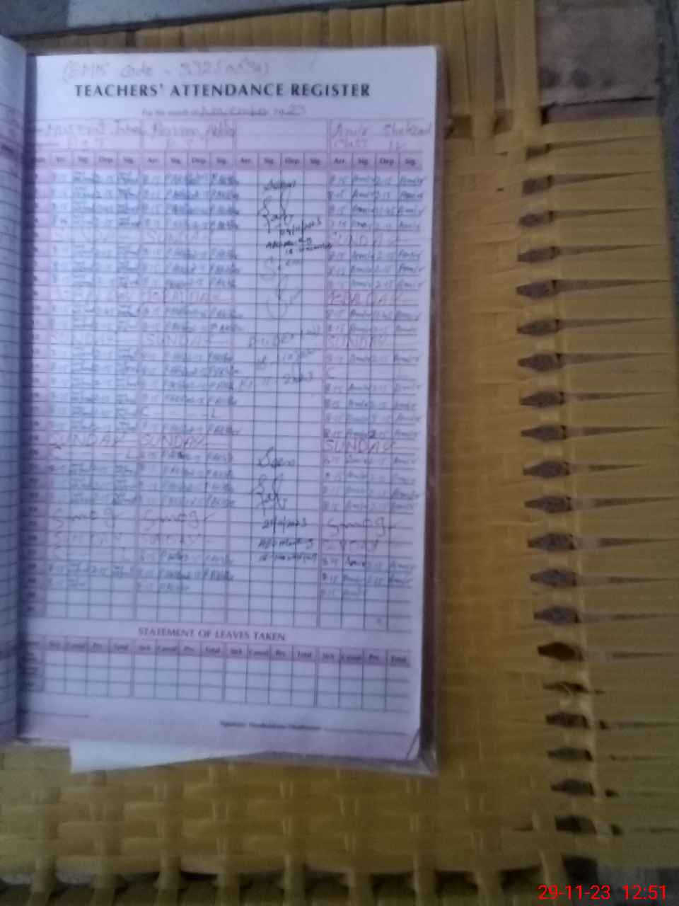 | Total no. of Classrooms: 2 No. of Classrooms Used for Teaching: 2 No. of Classrooms Storing Old Furniture, FTBs, etc: 0Comments if Any: Student attendance list of class kachi is appearing in the tab now these students are class 2nd |