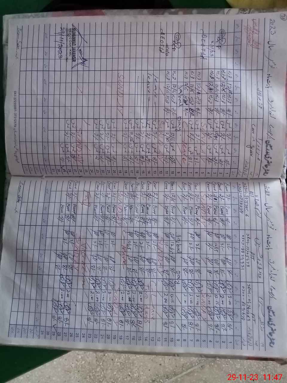 | CNIC | Full Name | Designation | R/C | Absence During Last Calender Month |