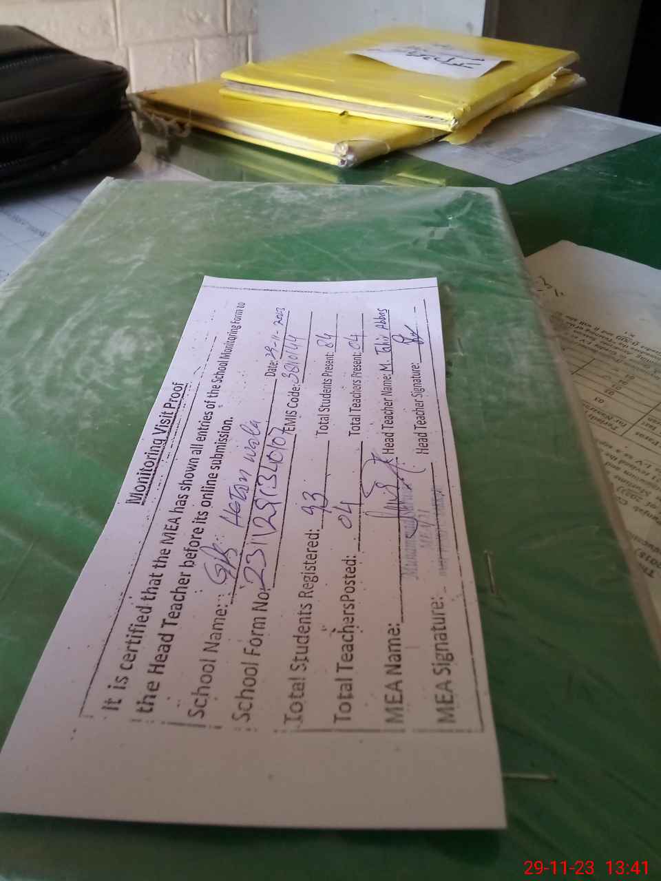 | Attendance Register | Head Teacher | MEA with School | Visit Proof |