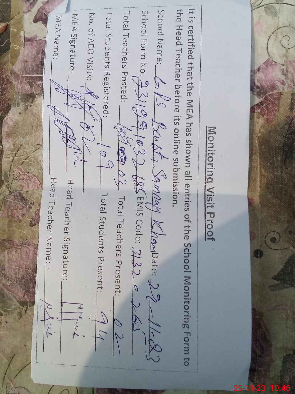 | EMIS Code: 31320265 | Name of School: GPS BASTI SAMNAY KHAN | |||
