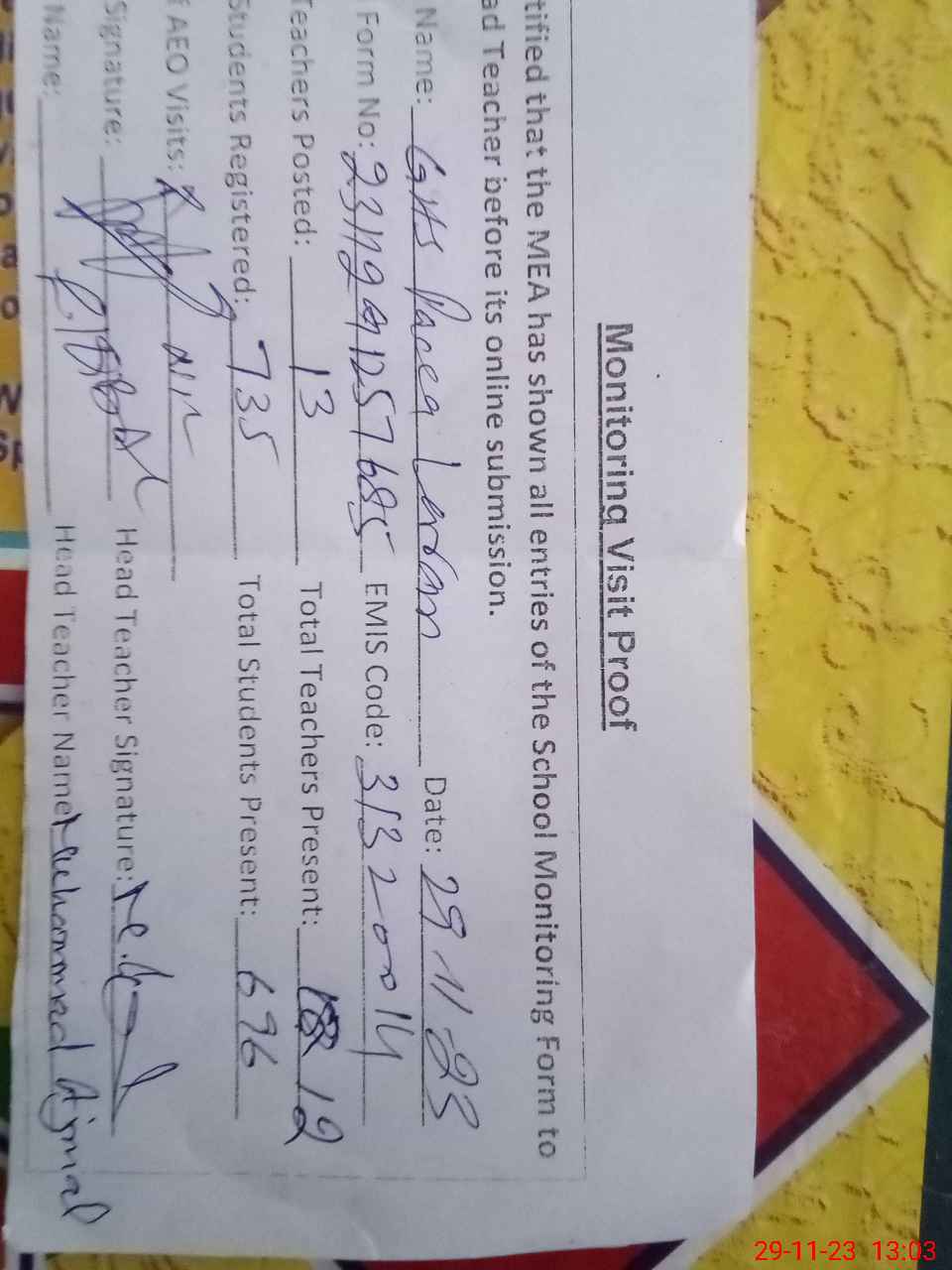 | EMIS Code: 31320014 | Name of School: GHS PACCA LARAN | |||