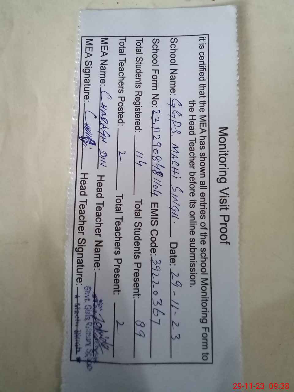 | EMIS Code: 39220367 | Name of School: GGPS MACHI SINGH 1 | |||
