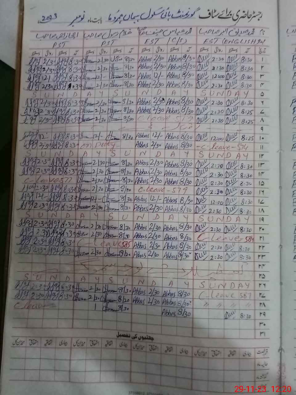 | CNIC | Full Name | Designation | R/C | Absence During Last Calender Month |