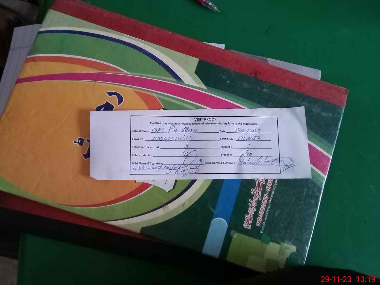 | Attendance Register | Head Teacher | MEA with School | Visit Proof |