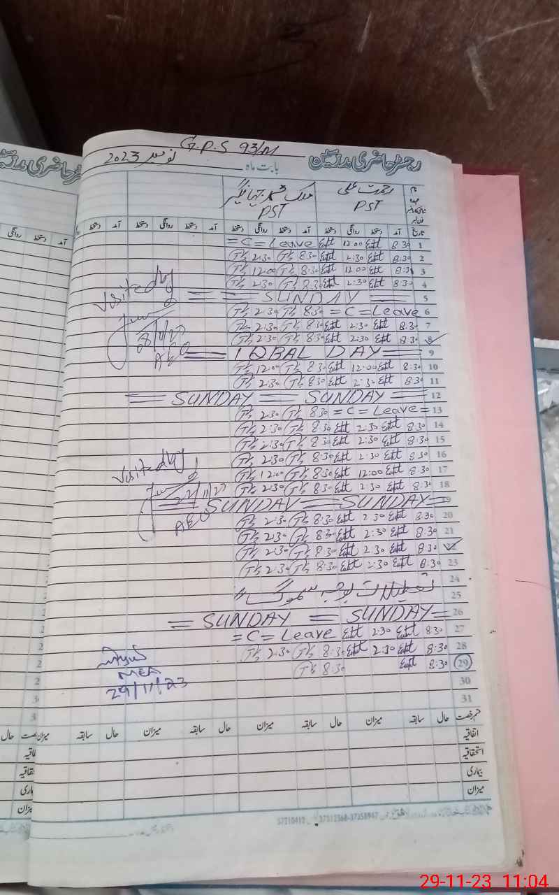 | CNIC | Full Name | Designation | R/C | Absence During Last Calender Month |